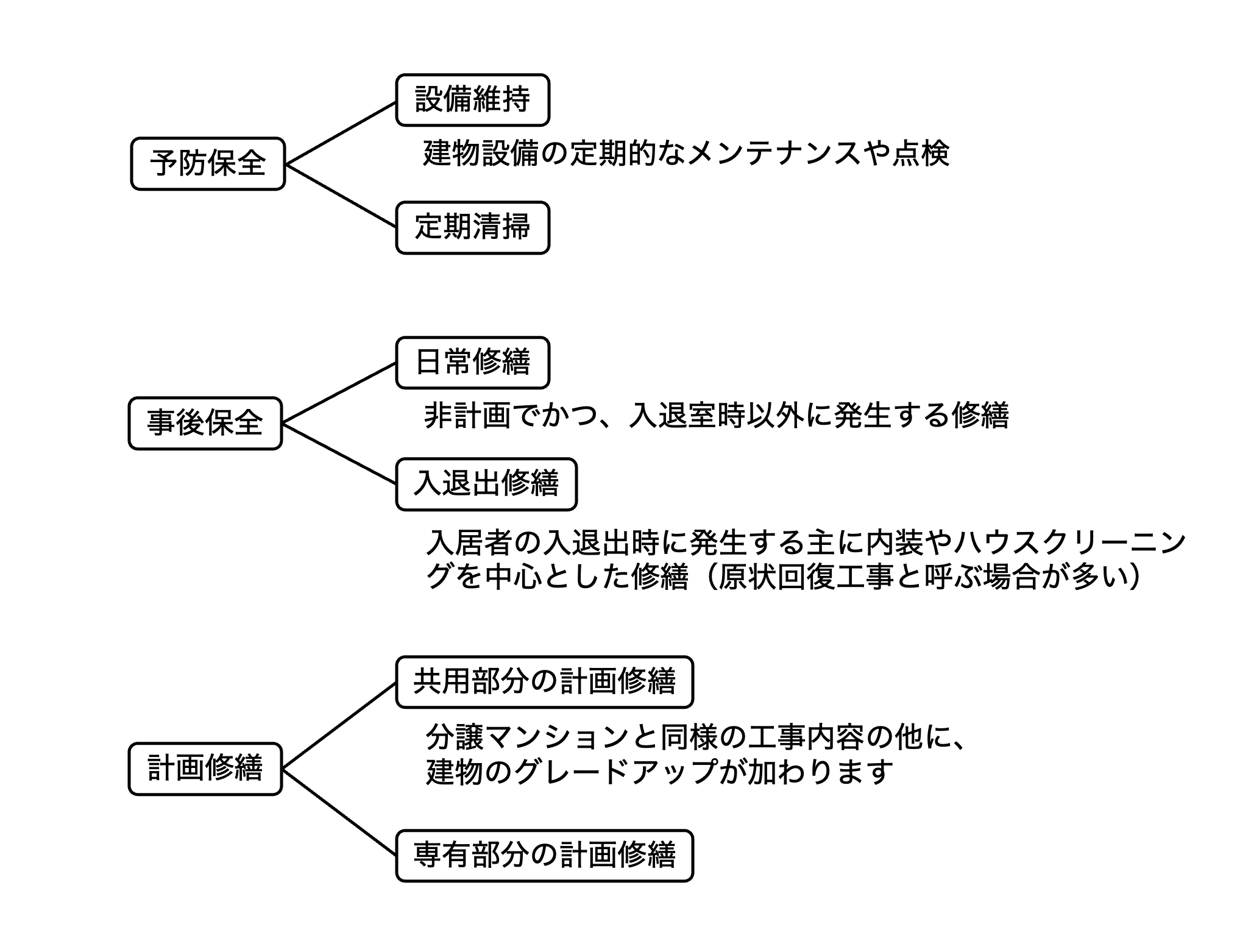 建物の維持管理全体の中での計画修繕の位置づけ