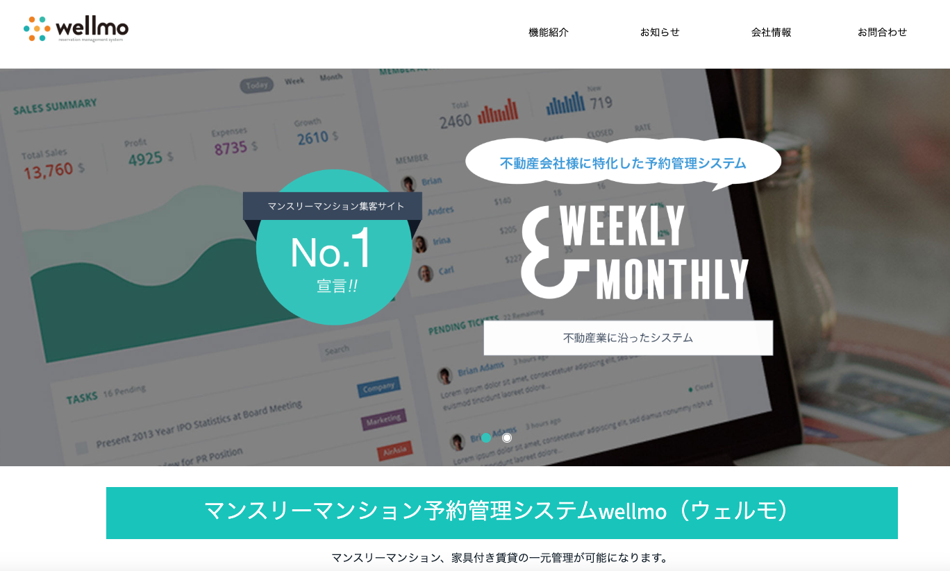 ▲マンスリーマンション予約管理システム「wellmo(ウェルモ)」