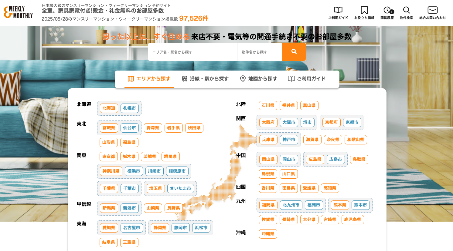 ▲マンスリーマンション検索ポータルサイト「W&M(ウィークリー&マンスリー)」