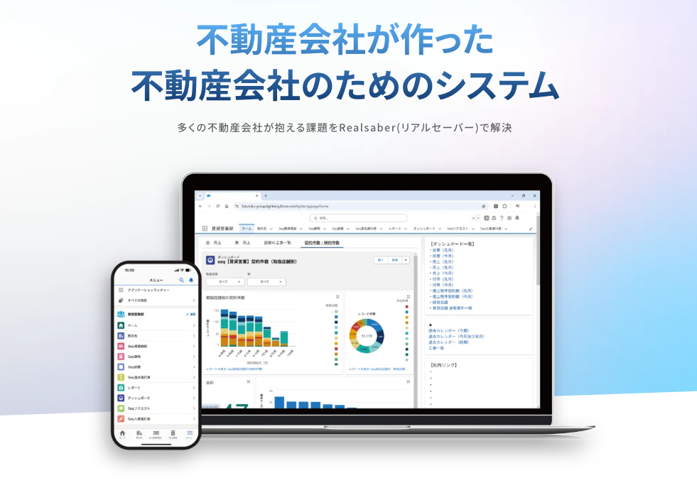 実務経験なしで副社長に就任し、社長へ。異例のキャリアを歩んできた福島社長が率いる株式会社福徳不動産は、長崎という地域に深く根ざしながら、最先端のデジタル技術で業界に新風を吹き込んでいます。「好きこそものの上手なれ」を体現するマネジメントで社員の自主性を重視し、サブリース入居率98.7%という圧倒的な実績を築いてきた同社。その強みを活かして自社開発した不動産管理システム「Realsaber」は、不動産会社が作った不動産会社のためのシステムとして、業界に新たな選択肢を提供しています。