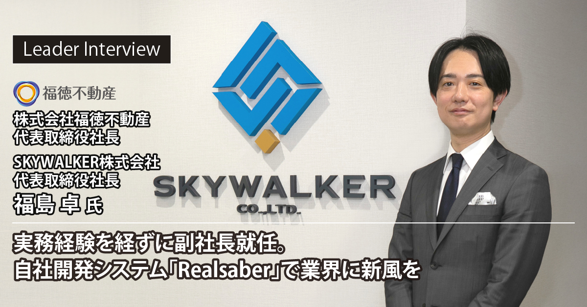 今回お話を伺ったのは、長崎を拠点に不動産管理業を展開する株式会社福徳不動産の代表取締役社長であり、同社が開発した不動産管理システム「Realsaber(リアルセーバー)」を展開するSKYWALKER株式会社の代表取締役社長も務める福島卓氏です。大和ハウス工業での営業経験を経て、実務経験を経ずに副社長へ就任という異例のキャリアを歩んできました。自社開発システム「Realsaber」で業界に新風を吹き込む同社の取り組みについて、詳しくお話を伺いました。
