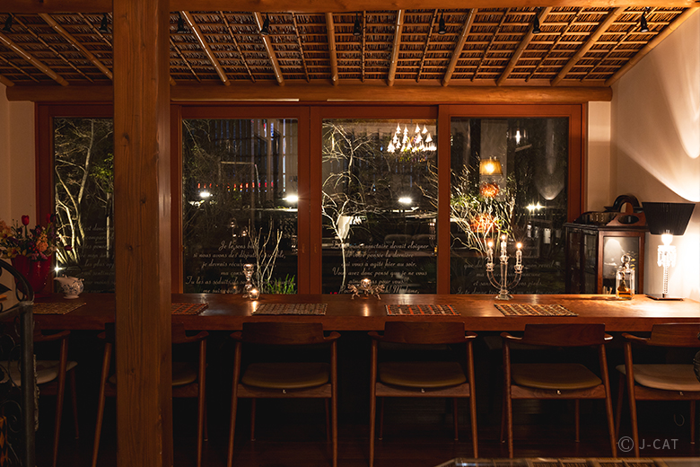 ▲和食割烹のメニューの一例。四季の美しさを五感で味わうフレンチ・和食割烹いずれの場合も、食後にはキャンドルで灯された幻想的なバーカウンターでコーヒーか紅茶を味わい、ゆっくり過ごすことができます。比類ない隠れ家レストランで五感を満たす贅沢なひとときです。