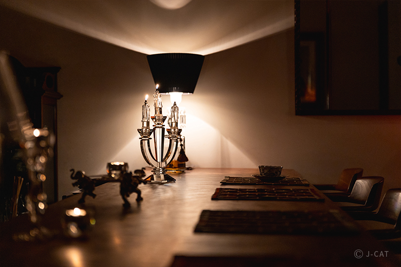 ・食後には、キャンドルで灯された幻想的なバーカウンターでコーヒーまたは紅茶を楽しみます。