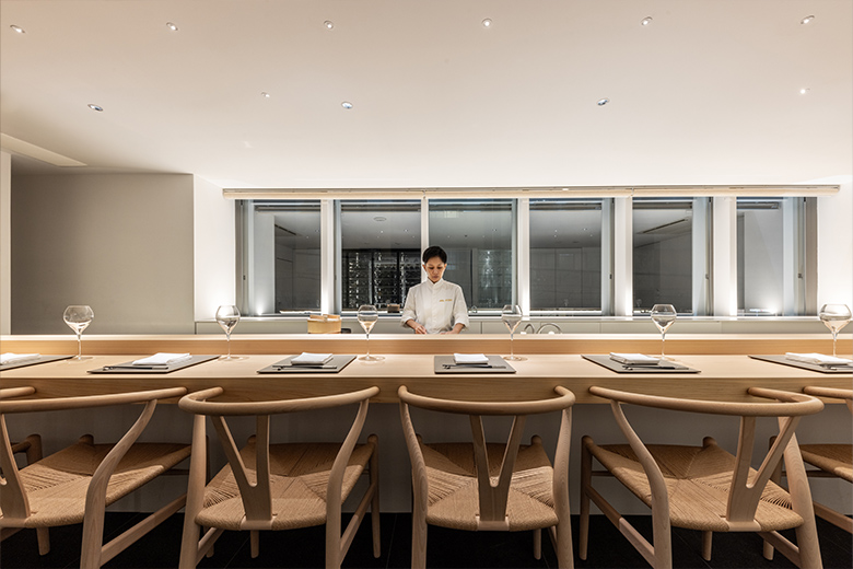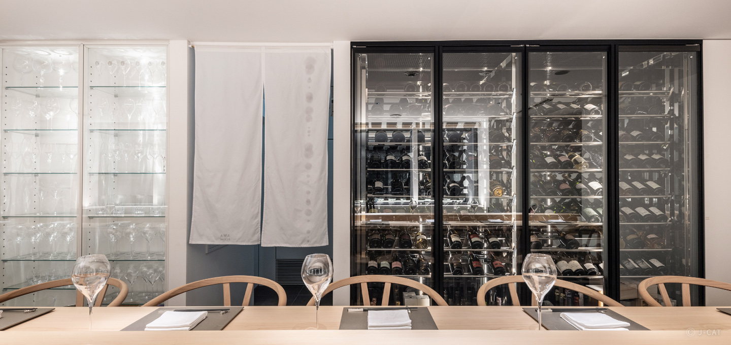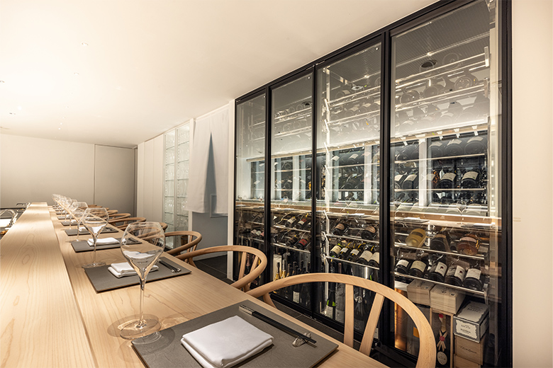 本体験の舞台は、ホテル2階にある鮨レストラン「AWA SUSHI 泡鮨」。日本文化の粋を感じさせる和の趣と華やかなシャンパーニュ文化が融合した、新しい鮨の楽しみ方を体験できるOtonami限定プランです。カウンター10席のみの完全予約制の空間を貸し切り、シャンパーニュと鮨とともに優雅なひとときを楽しめます。