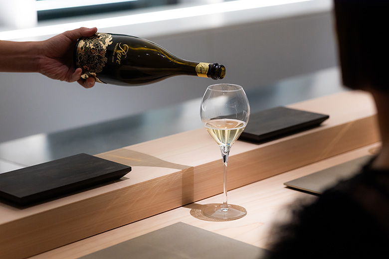 ▲目の前で注がれるシャンパーニュの芳醇で上品な香りを堪能したい