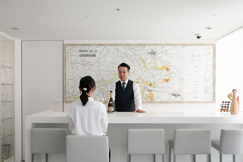 ▲ソムリエと話しながらシャンパーニュ選びができる「AWA Lounge & Bar」