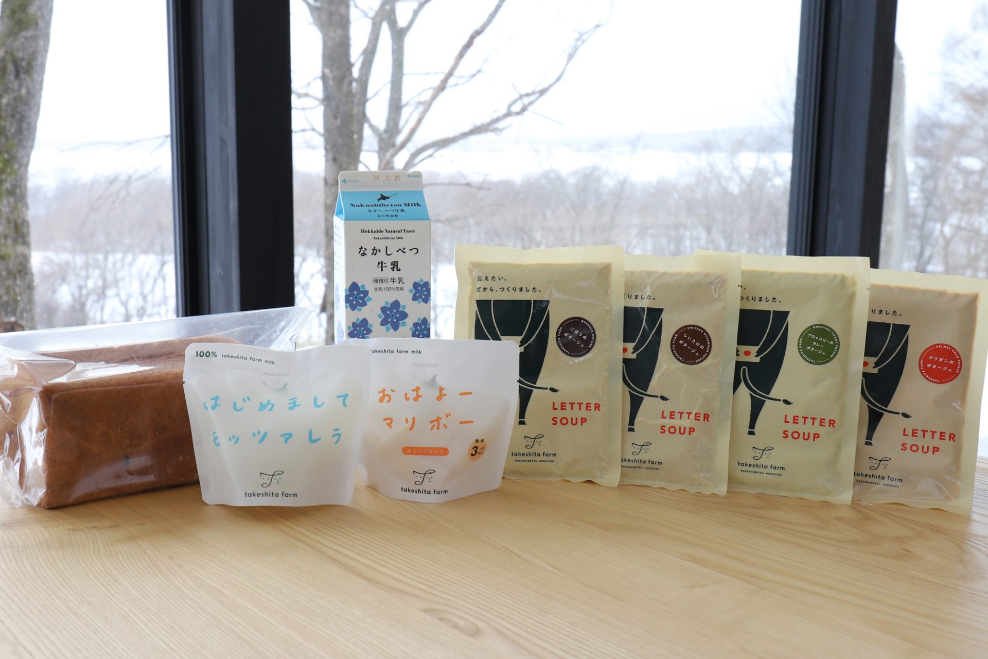 ご到着時には、竹下牧場特製のポタージュスープやチーズ、天然酵母の食パン1斤をご用意しています。
