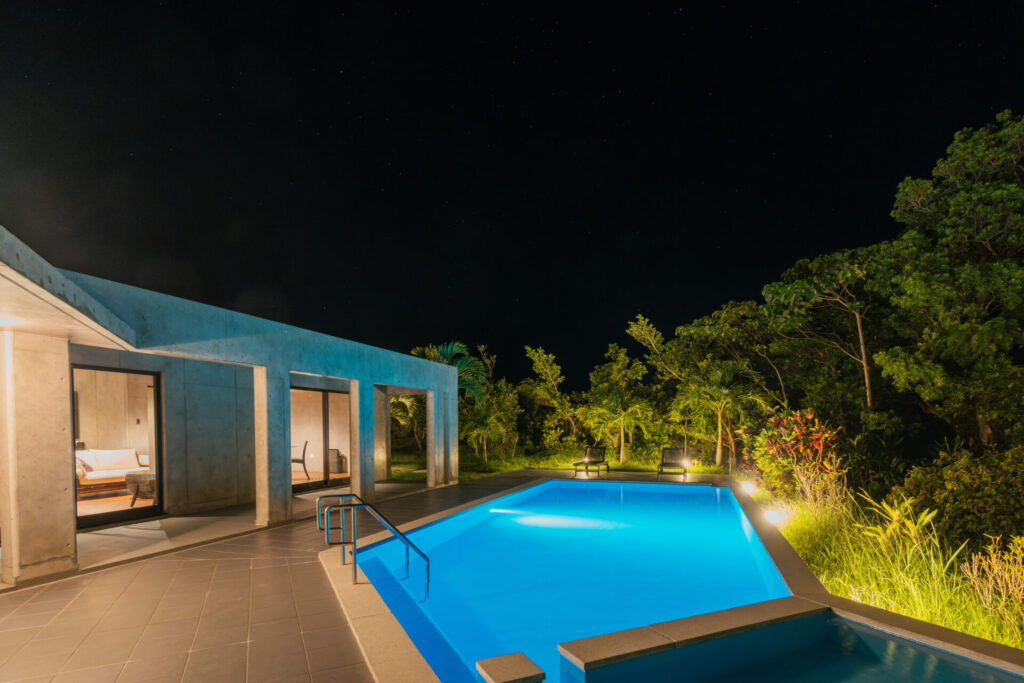 沖縄本島北部、今帰仁(なきじん)の森。その奥に、わずか11棟のみのプライベートヴィラが静かに佇んでいます。