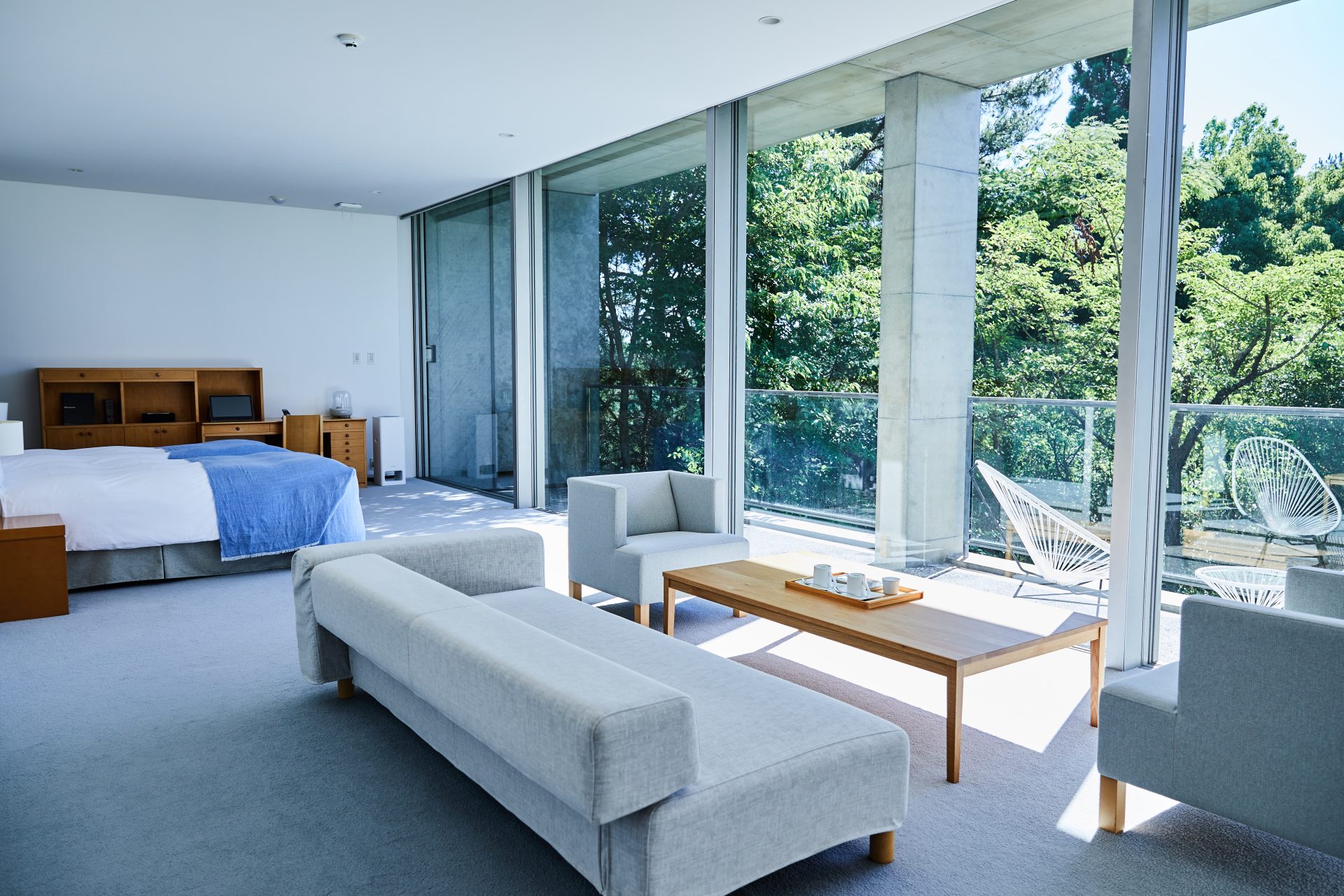 また、鮮やかな緑を間近に感じるウッドバルコニーを備えた「ガーデンスイート」も人気の一室。季節ごとの自然の表情を楽しめる癒しの空間です。