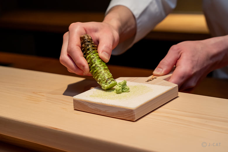 ▲味わうだけではなく、見たり触れたりする楽しみも(和包丁のお話やわさびのすりおろしは行わない場合があります)