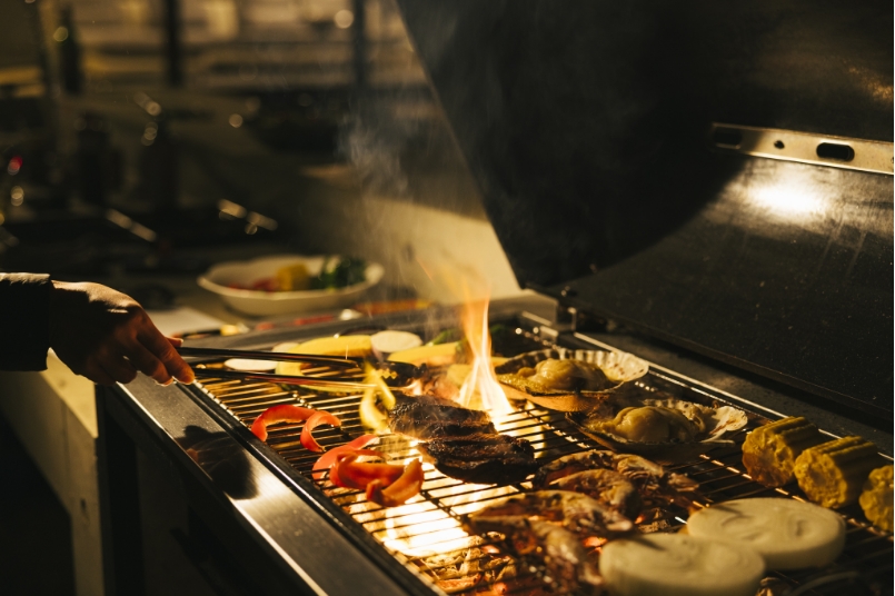 プールサイドにBBQをお楽しみいただける、グリルコーナーを完備しています。お好みの食材を購入し、オリジナルBBQをお楽しみください。夜はライトアップされ、バーカウンターとしてもご使用いただけます。