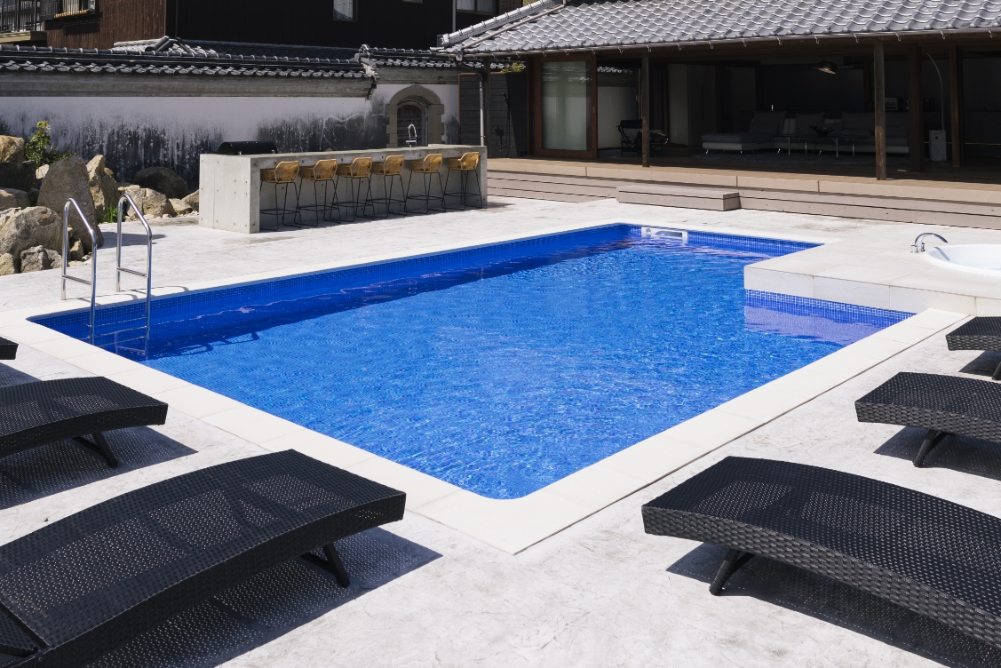 横幅5m長さ8mの大きなプライベートプールは、大人もゆったりと泳げるサイズです。21時まではライトアップしてご利用できるため、ナイトプールとしてもお楽しみいただけます。プールサイドには、バーカウンターやジャグジーが設置されており、淡路島の満点の星空の下で心身ともにリラックスしていただけます。