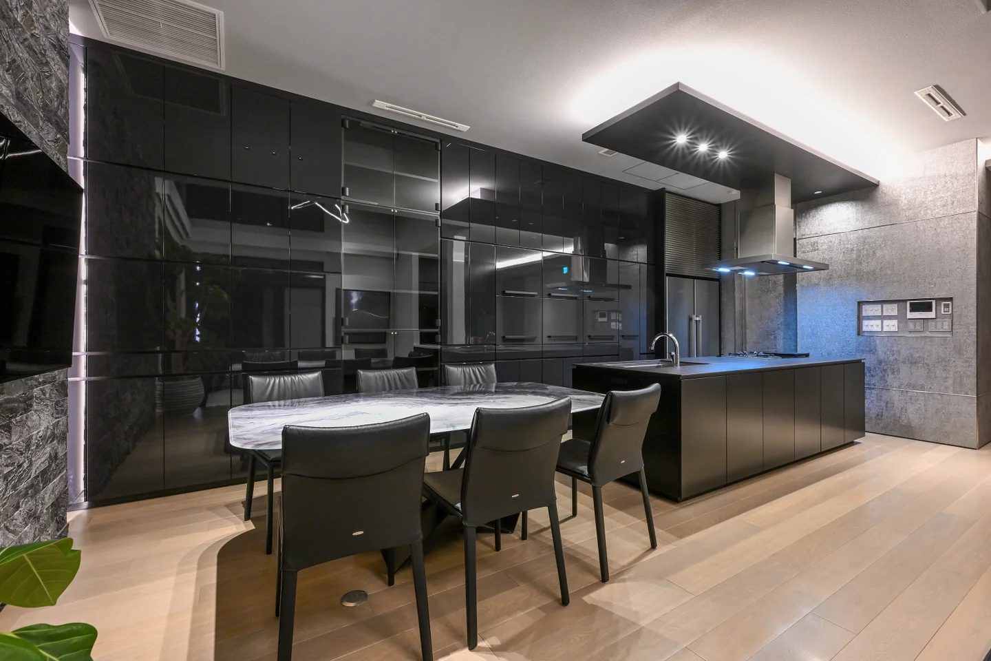 洗練されたキッチンとダイニングは、海外の邸宅を思わせる設え。
