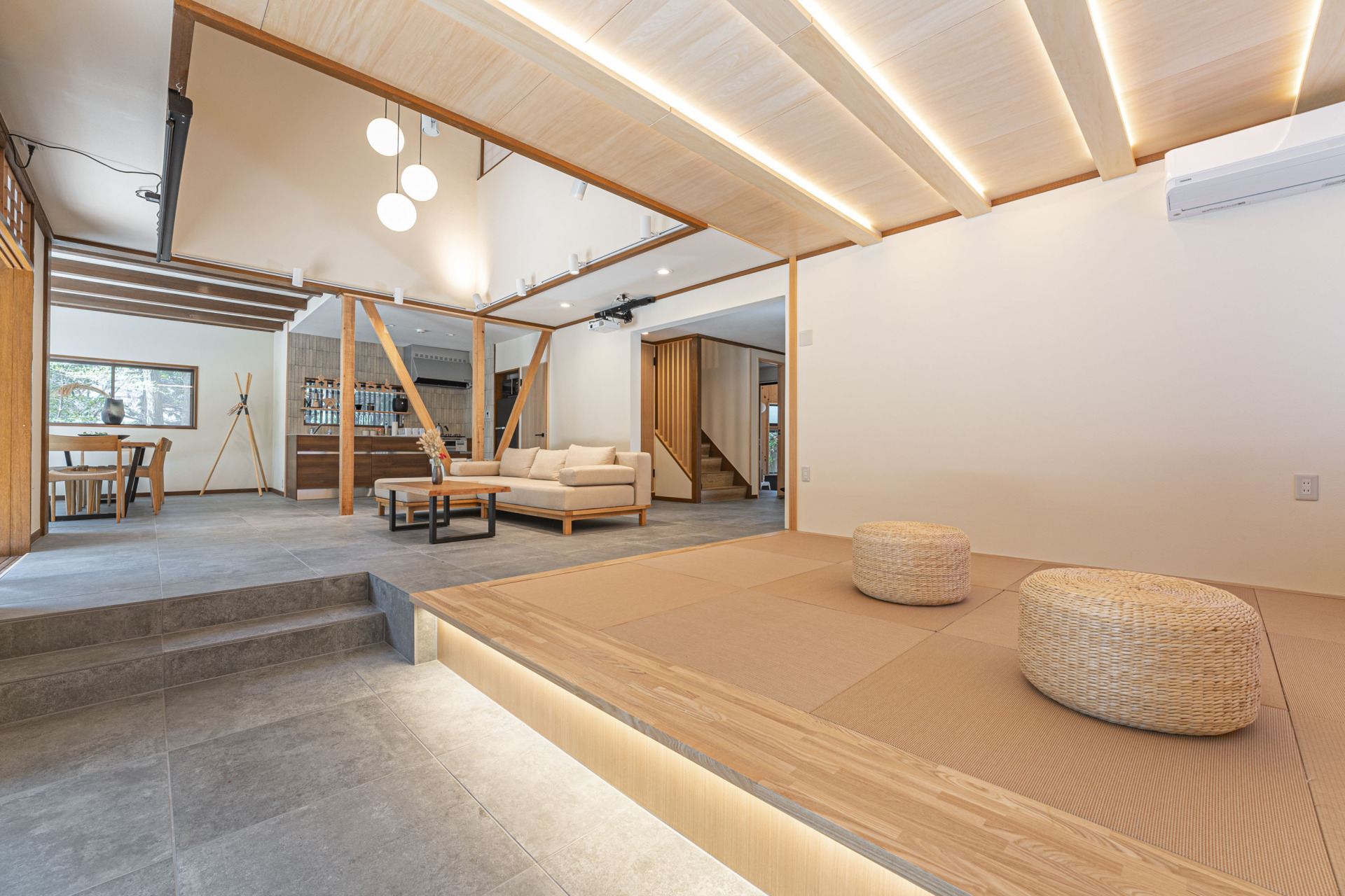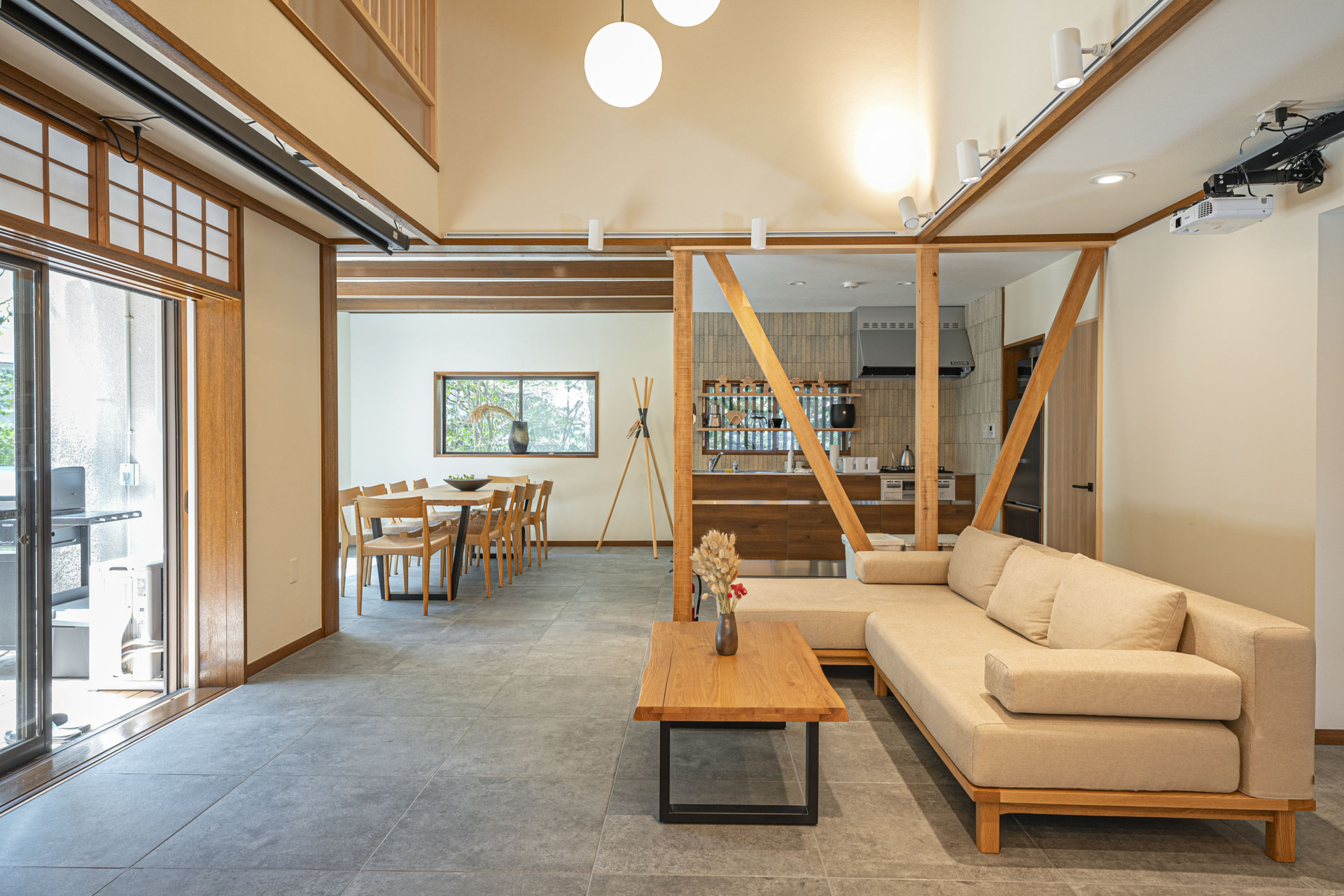 この宿は、一棟貸しの形式で利用することができます。建物をまるごと利用できるため、周囲を気にすることなく自分たちのペースで過ごすことができます。