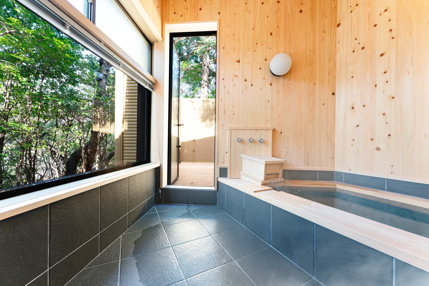 館内には温泉設備も備えられています。箱根の湯にゆっくりと浸かる時間。旅の疲れをやさしくほどくひとときです。