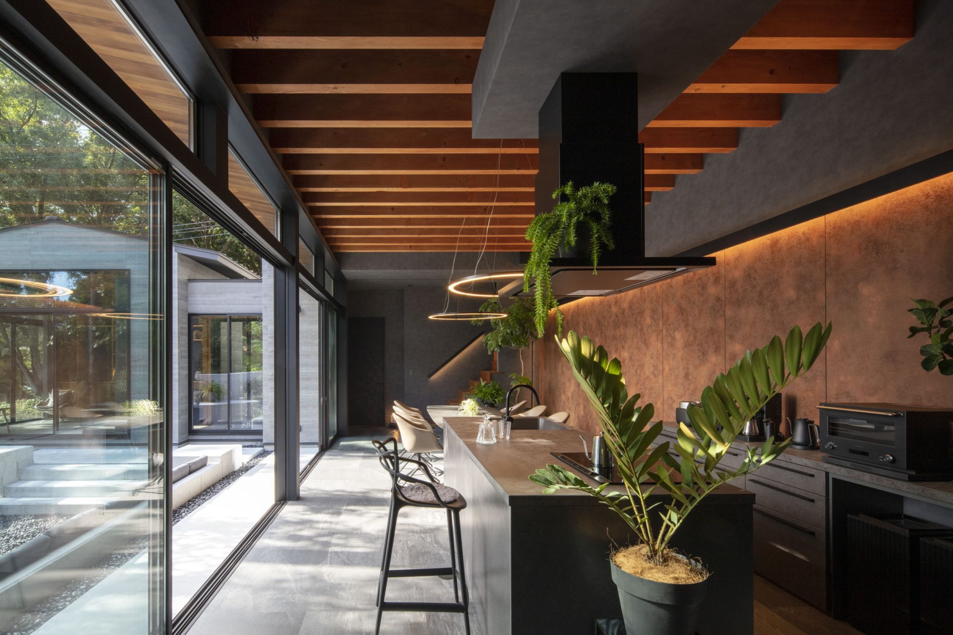約590㎡の広大な敷地には、本棟と別棟がゆったりと配置され、入口の門をくぐった瞬間から、まるでプライベートホテルに滞在しているかのような特別な時間が始まります。
